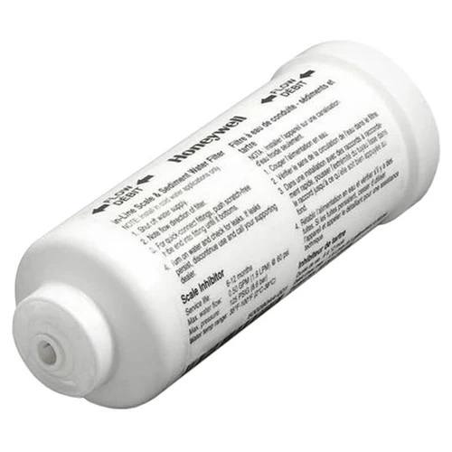 Plumbs in-line removes scale and sedimate from humidifier supply water.